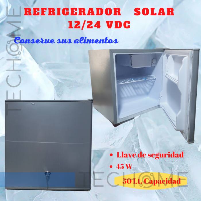 Conserve sus alimentos y bebidas aprovechando la energia solar. Practico y funcional para las casas de campo o lugares sin acceso a la corriente. 50 Lt de capacidad y bajo consumo de corriente.